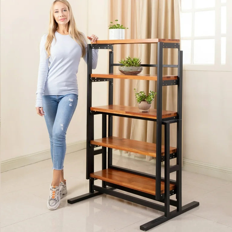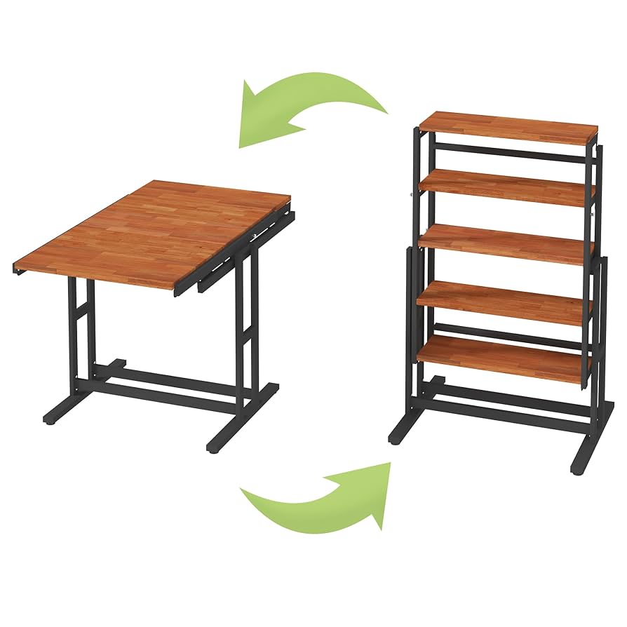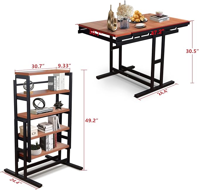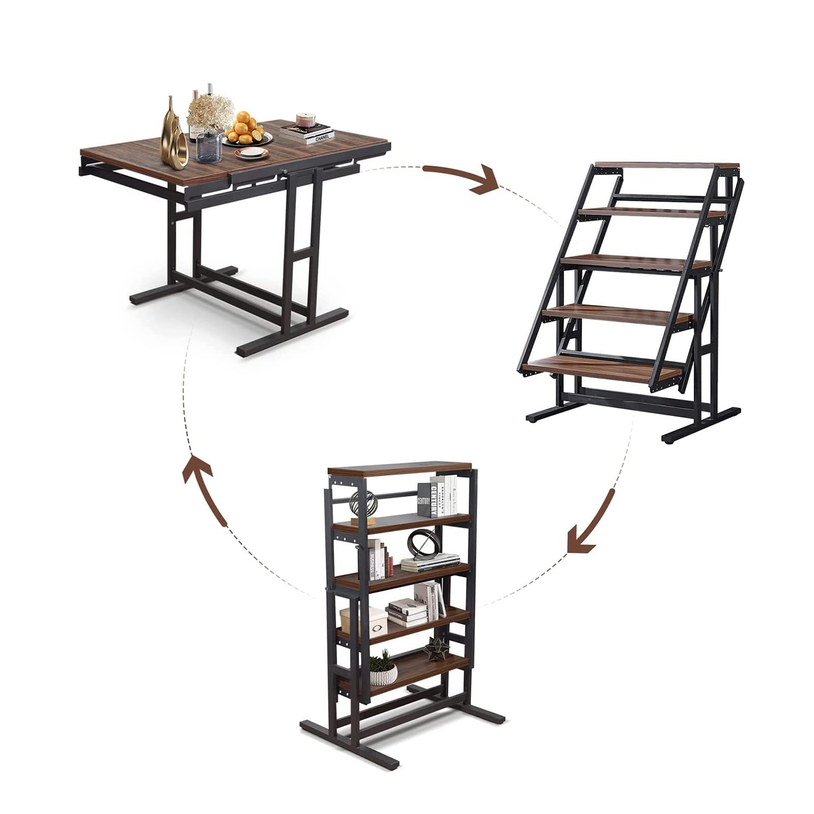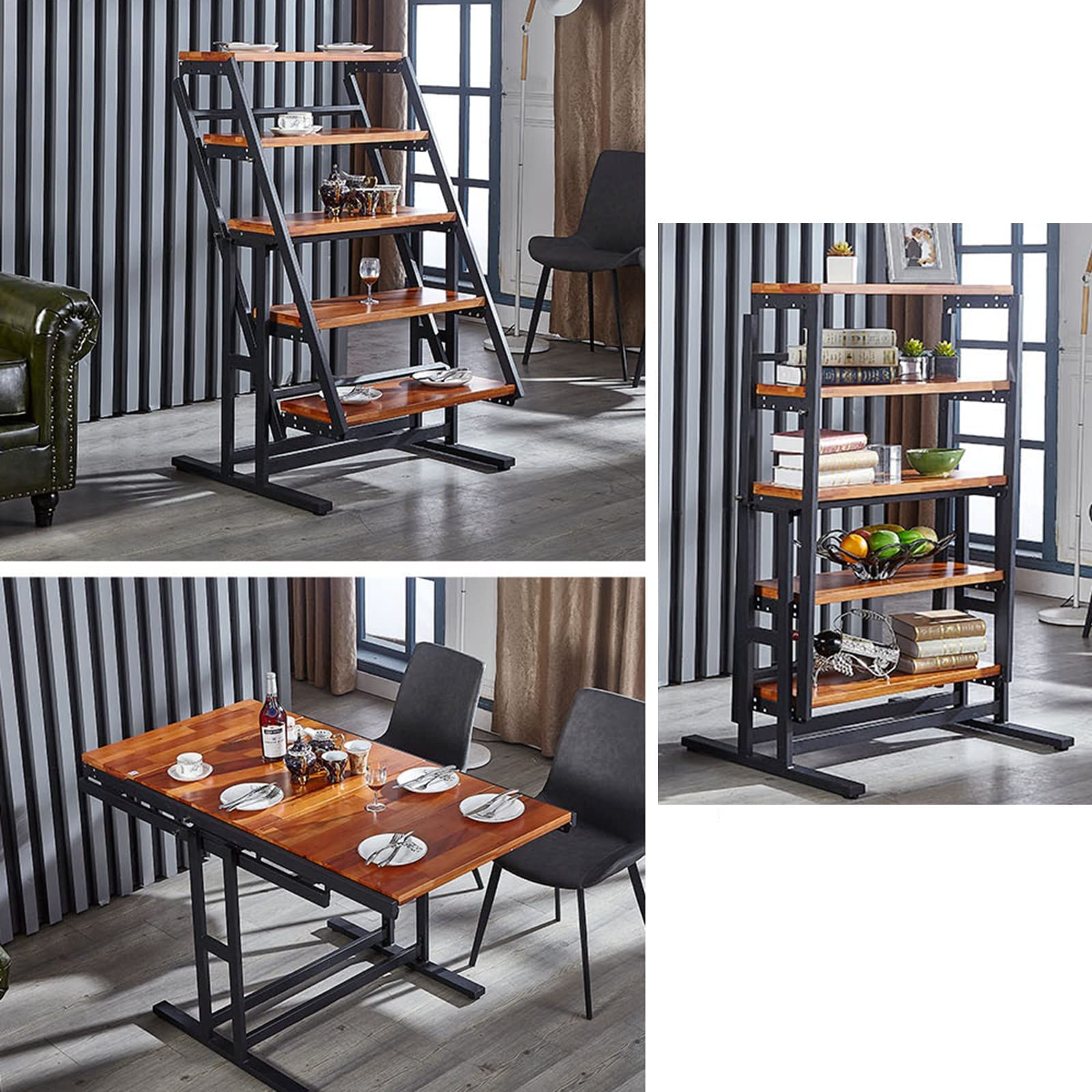 - Quick Transformation: Easily switches from a bookshelf to a dining table without the need to move items, simplifying transitions.